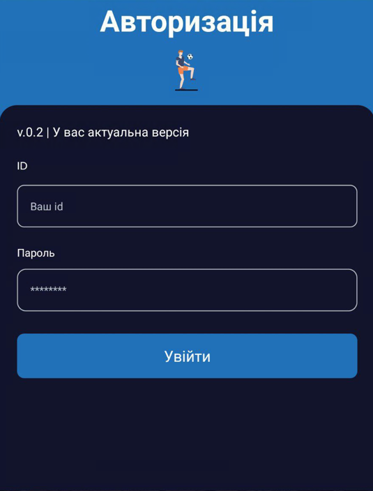 1. Авторизуйтеся в додатку з власним id та паролем.