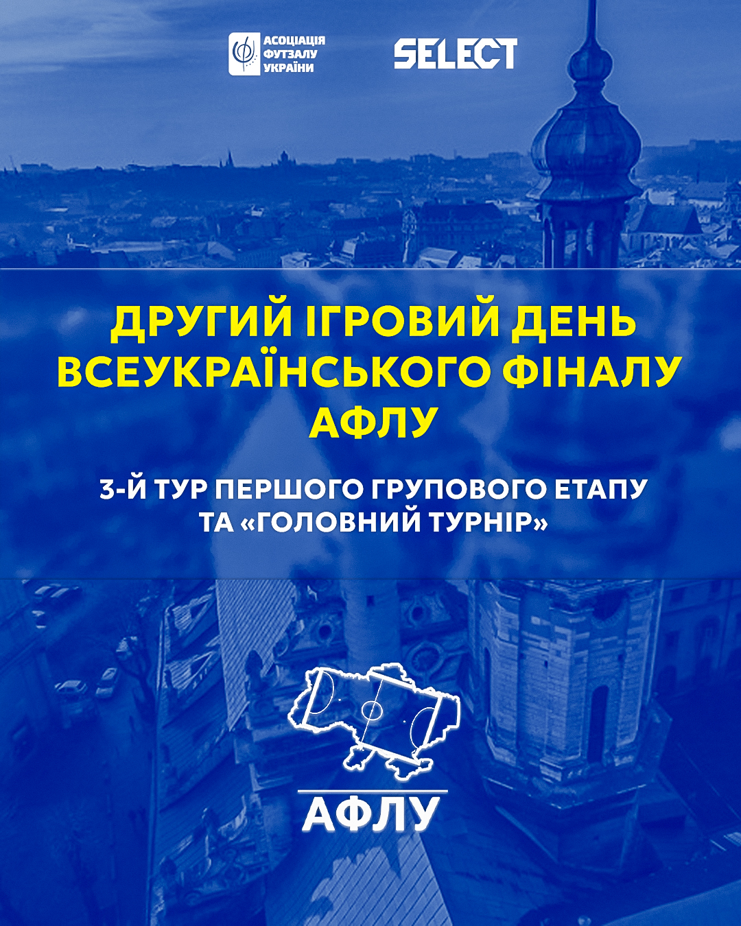 У суботу, 4 квітня, продовжується Всеукраїнський фінал Аматорської футзальної ліги України. У першій третині ігрового дня у групах А, Б, В, Д та Е відбудеться третій тур першого групового етапу.  Група А «Рибак-Галія» (Івано-Франківськ) – 6 очок, 4:4 різниця м’ячів «Урбан» (Хмельницький) – 6, 6:3 «Кусто-Агро» (Вінниця) – 3, 2:3 «Мангал-Iron» (Запоріжжя) – 3, 4:5…