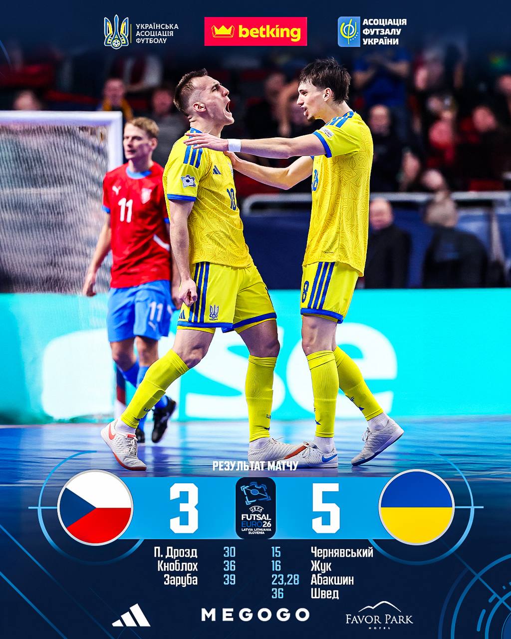 Національна збірна України з футзалу здобула перемогу над Чехією у 3-му турі Євро-2026.