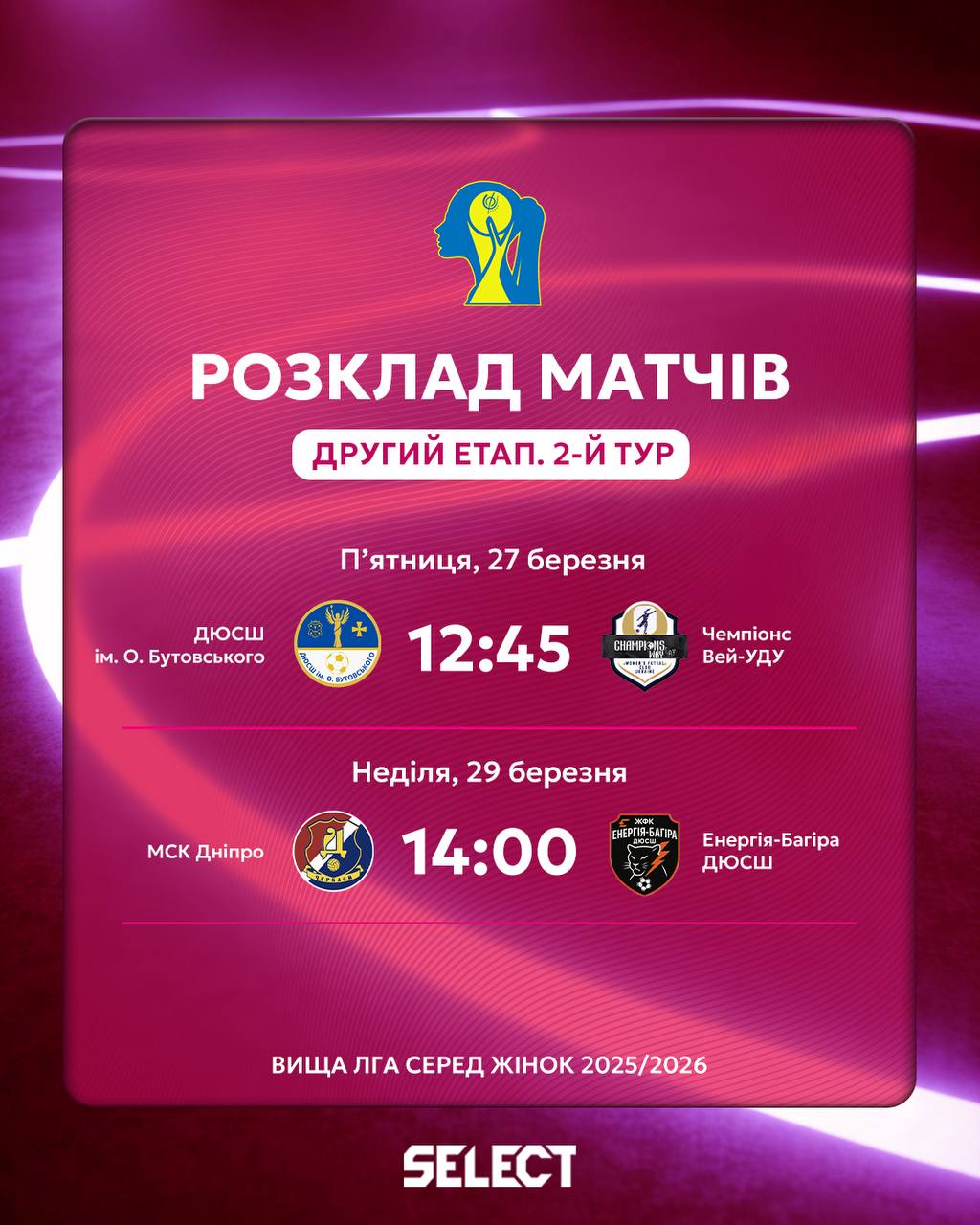 Комітет арбітражу Асоціації футзалу України оприлюднив призначення офіційних осіб на матчі 2-го туру другого етапу Вищої ліги серед жінок 2025/26.